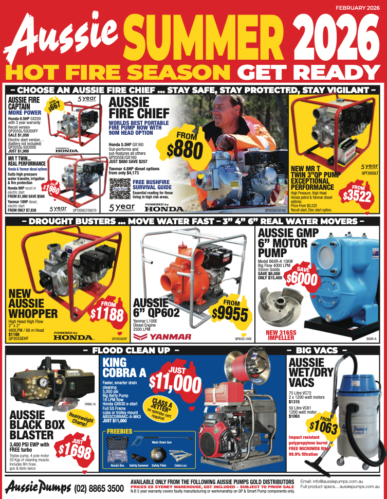Check out Aussie Pump specials on the best portable fire pumps, transfer pumps and pressure cleaners on the market.