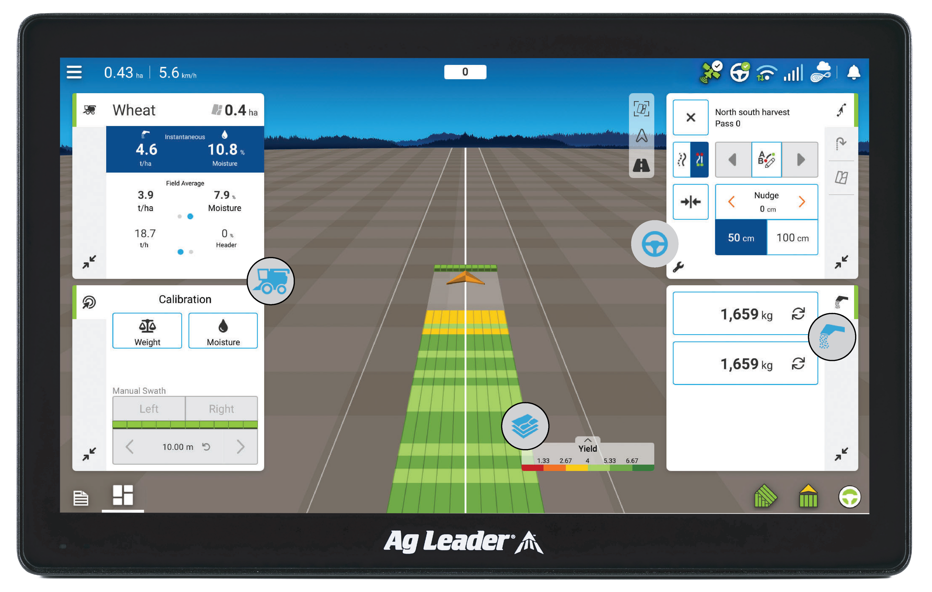 Always accessible guidance and steeringYour steering controls, vehicle icon, and guidance line are always visible in any chosen view without losing sight of the map screen and your harvest information.